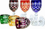 Coloured crystal liqueur glasses 60 ml French