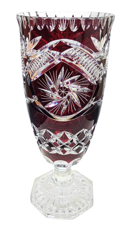 A stunning 35 cm high ruby vase, ideal for displaying bouquets of flowers of impressive size. Exceptionally careful production from the highest quality crystal glass with 24% PbO content guarantees an extraordinary shimmer in the colours of the rainbow. The elegant and timeless THC design adds a unique touch to this vessel. The Ruby Crystal Vase is the perfect choice for those who appreciate not only aesthetics but also refined workmanship.Do you need help? Do you have any questions?Ask a question and we'll respond promptly, publishing the most interesting questions and answers for others.