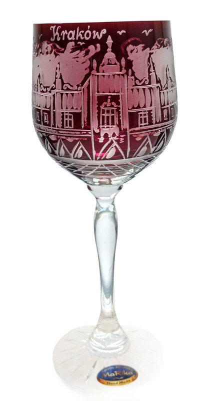 Grawerowane rubinowe kieliszki do wina Kraków 2szt