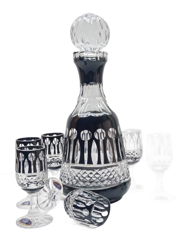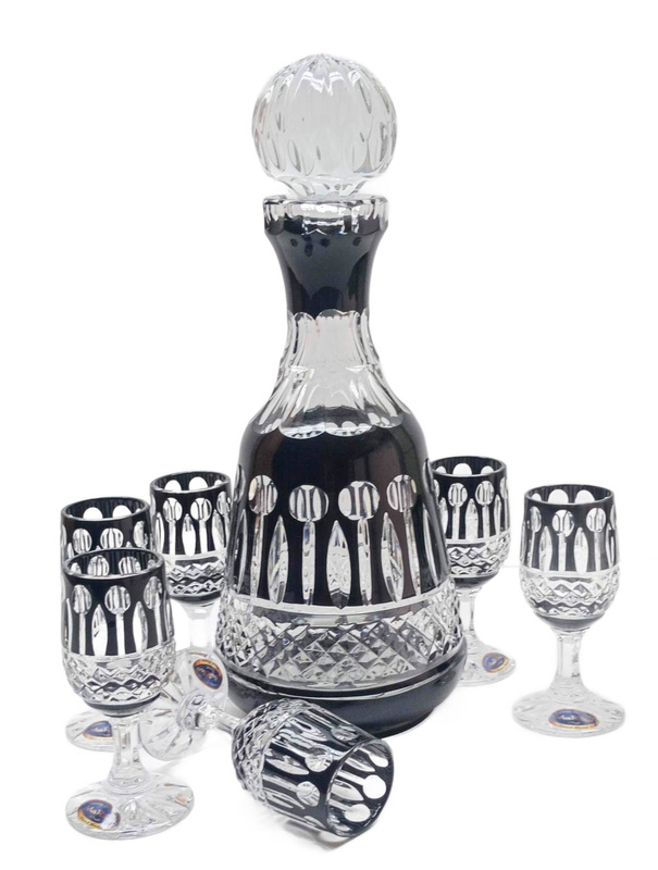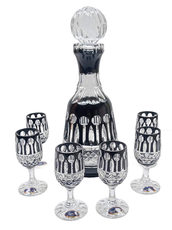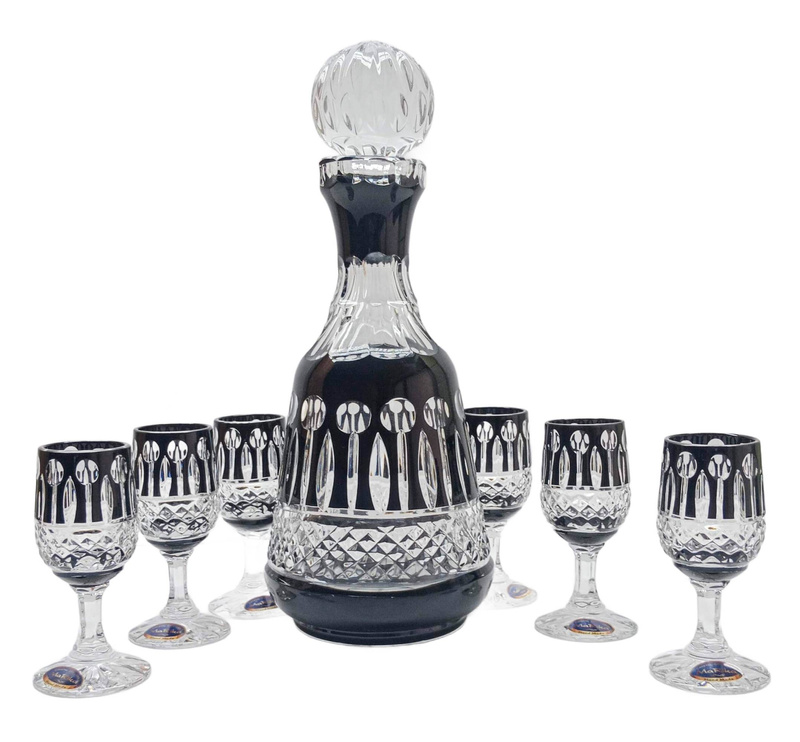 Czarny kryształowy zestaw Kieliszków z Karafką Francuski 6+1