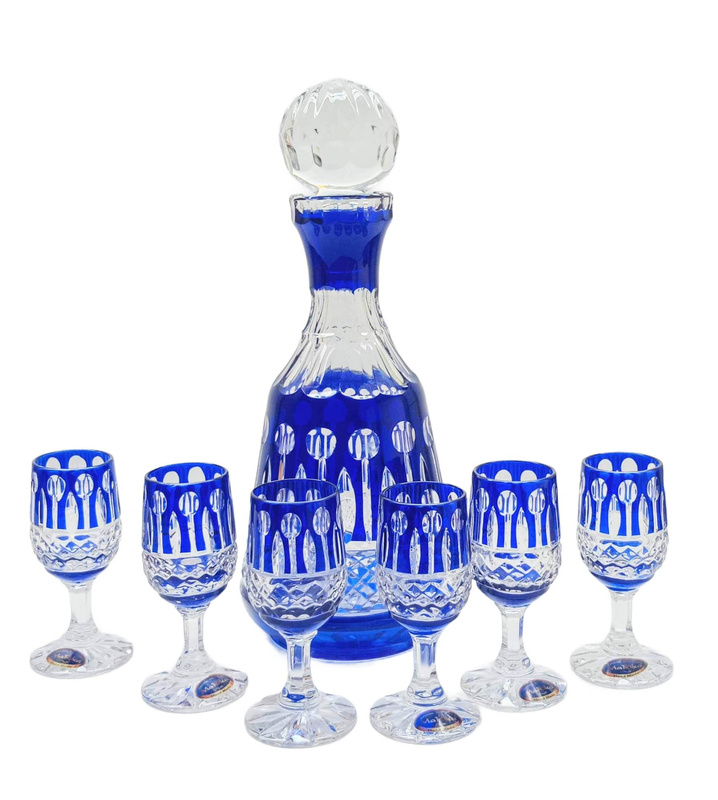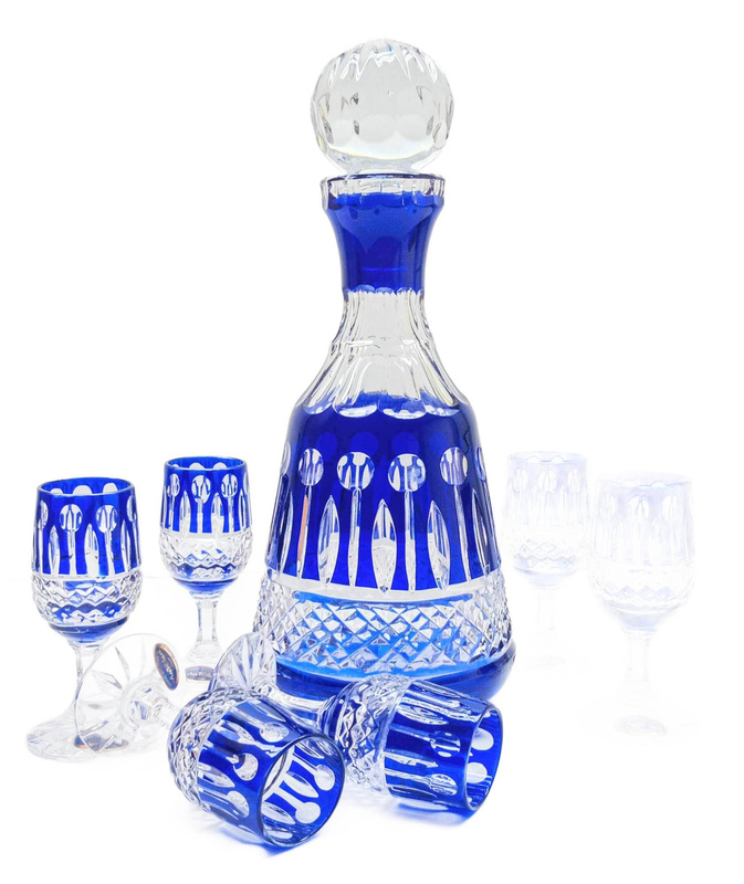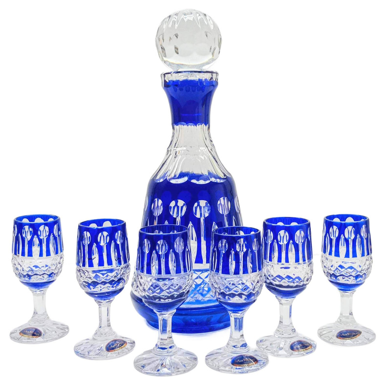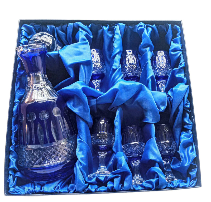 Kobaltowy kryształowy zestaw Kieliszków z Karafką Francuski 6+1
