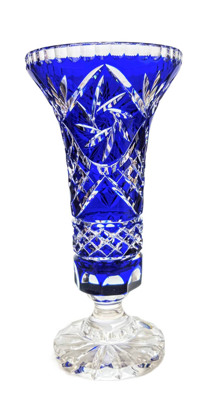 MaRika crystal Wazon kryształowy Kobaltowy 40 cm - elegancka dekoracja wnętrz z klasycznym wzorem Młynka, idealny na bukiety i stylowe aranżacje.